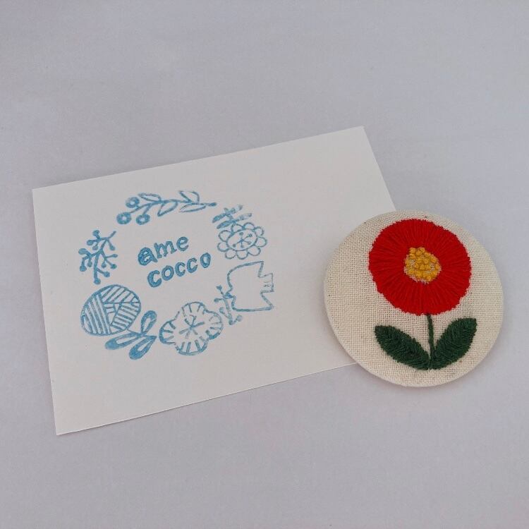 素材:刺繍糸、フェルト、くるみボタン、ブローチピン