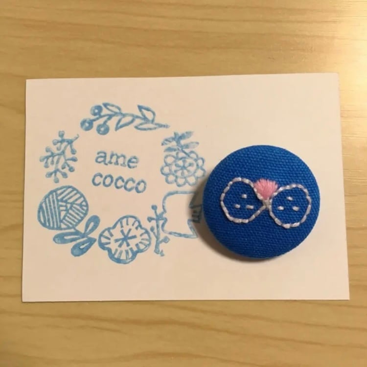 素材:刺繍糸、フェルト、くるみボタン、ブローチピン