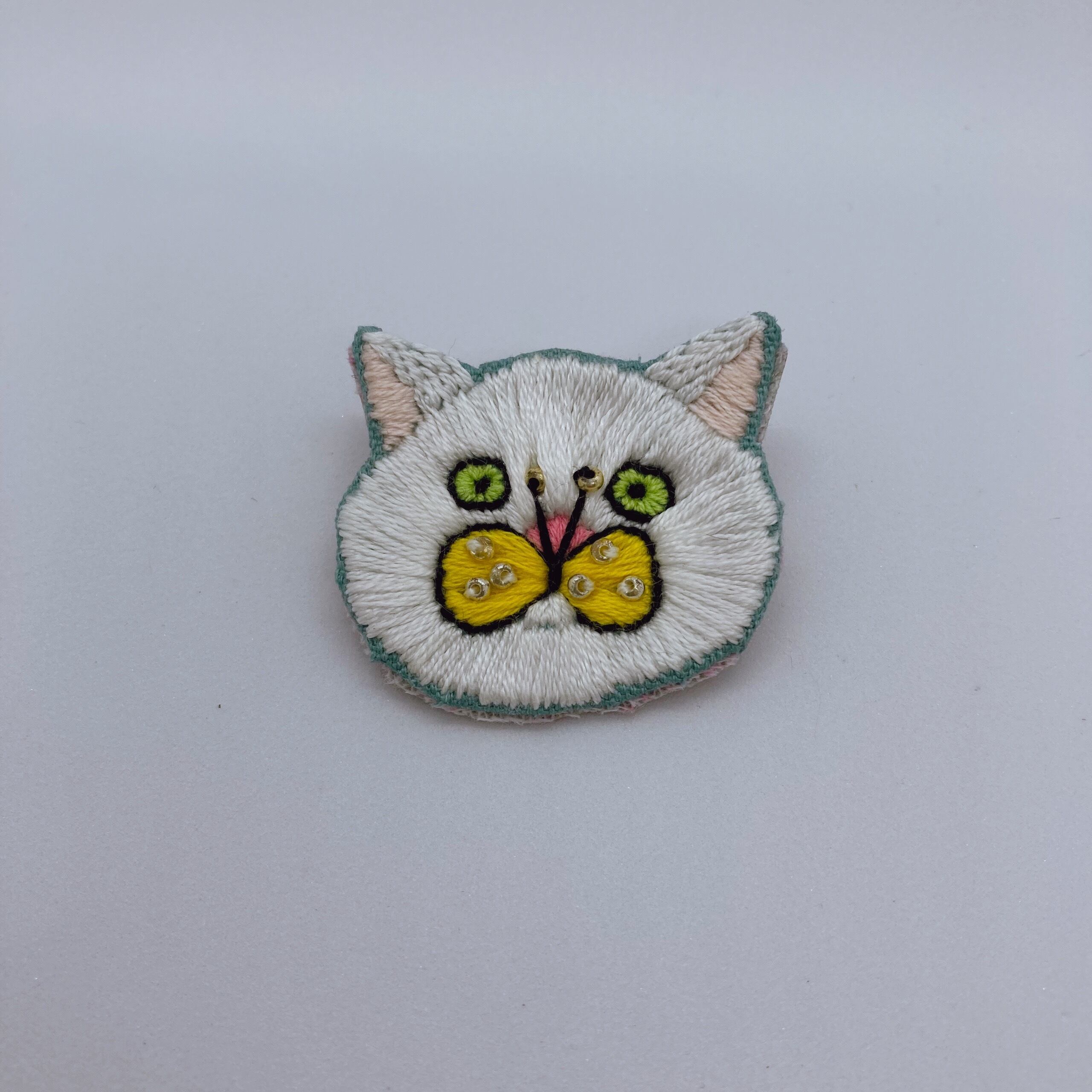 鼻にちょうちょが止まったネコチャンのブローチです。