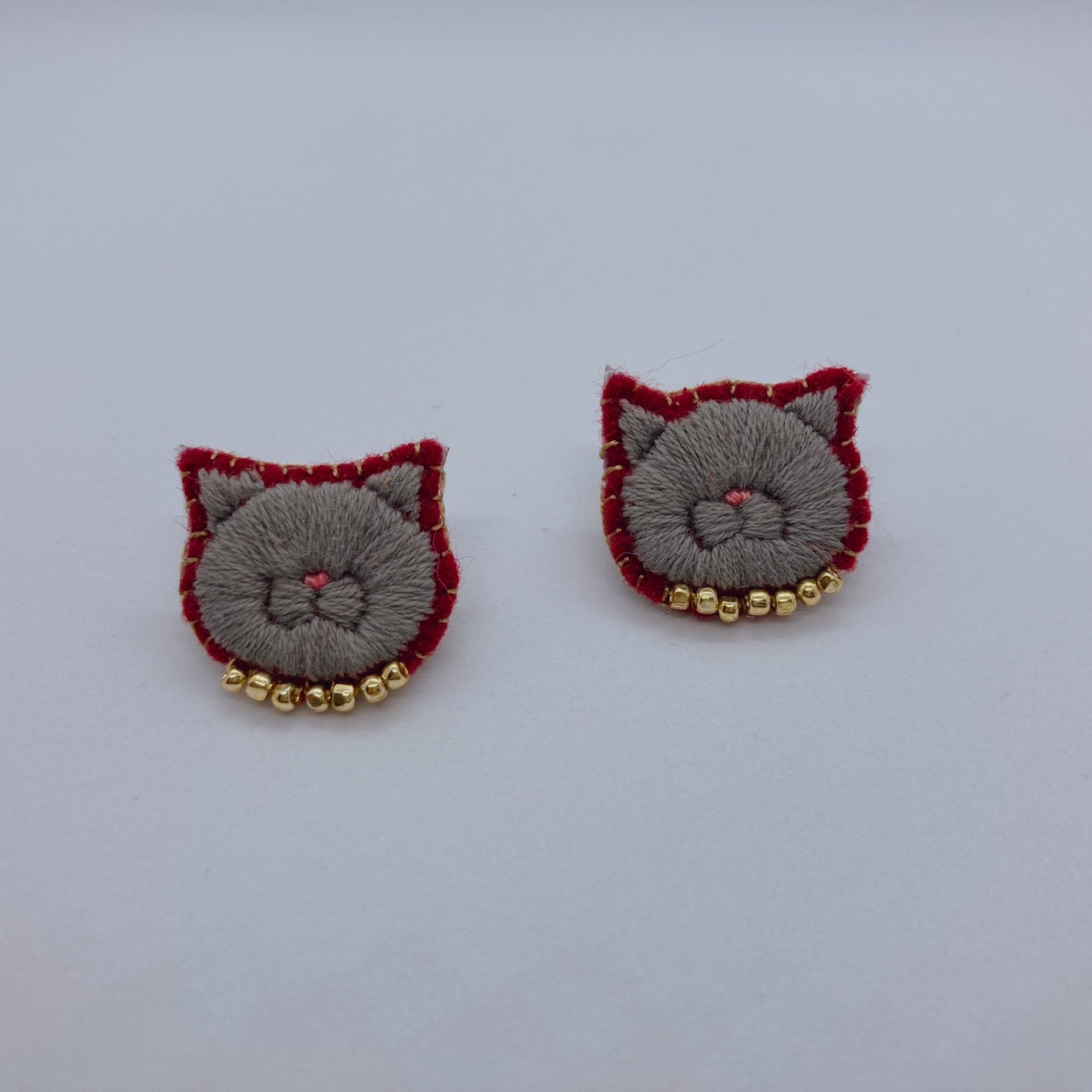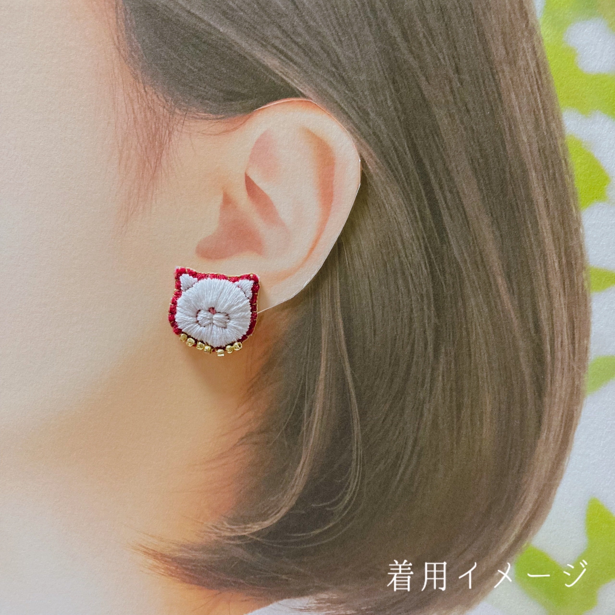 フェルト、刺繍糸、ビーズ、ピアスパーツ(真鍮・スチール)