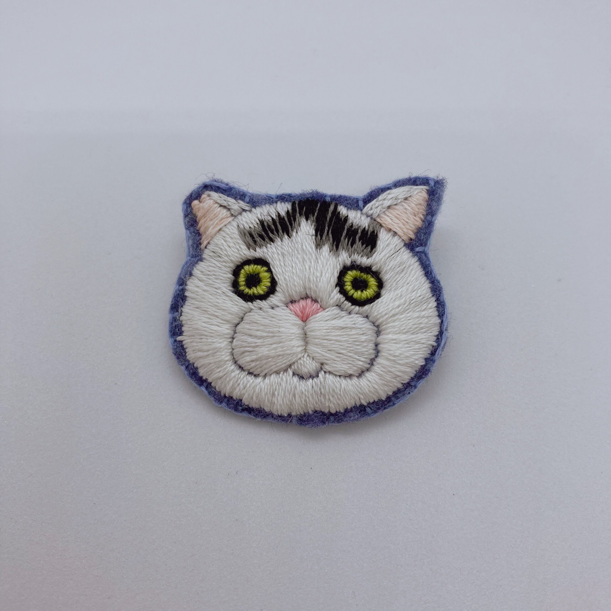 こちらは神奈川県横浜市で犬猫の保護活動をされている【おーあみ避難所】で保護された保護猫ちゃん達をモデルにした刺繍ブローチです。(写真の使用許可をいただきありがとうございました!)