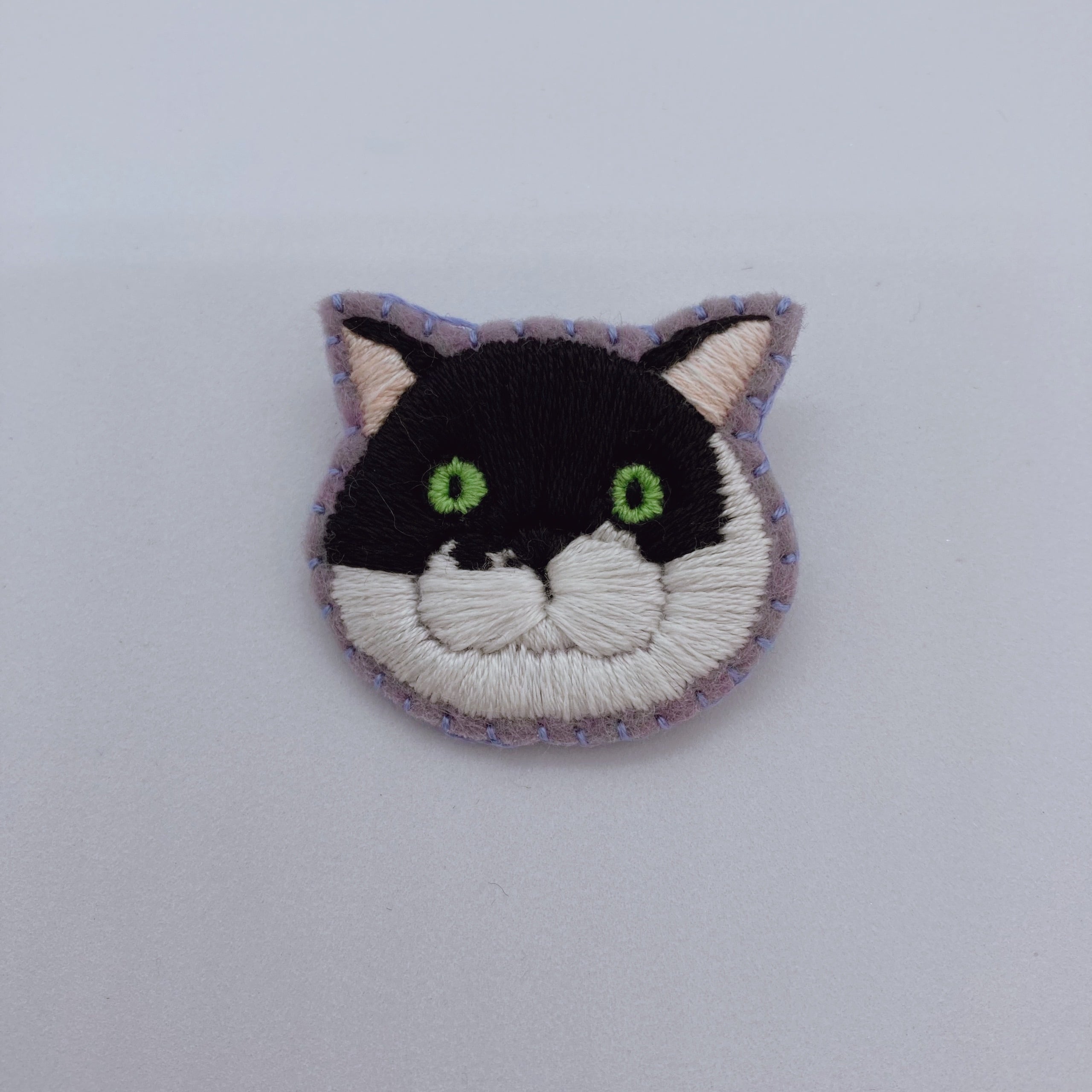 こちらは神奈川県横浜市で犬猫の保護活動をされている【おーあみ避難所】で保護された保護猫ちゃん達をモデルにした刺繍ブローチです。(写真の使用許可をいただきありがとうございました!)
