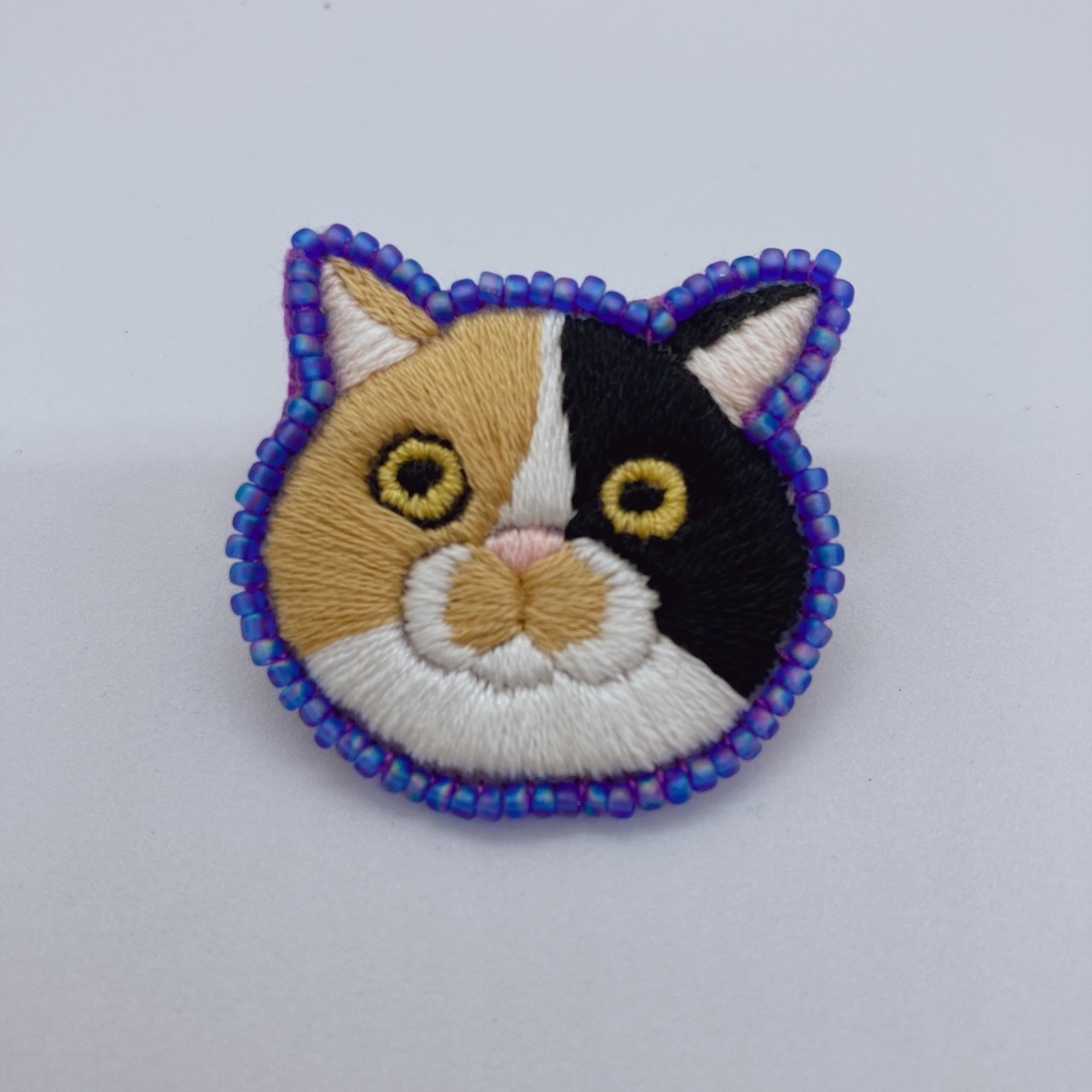 こちらは三毛猫ちゃんの可愛いネコチャンブローチです。