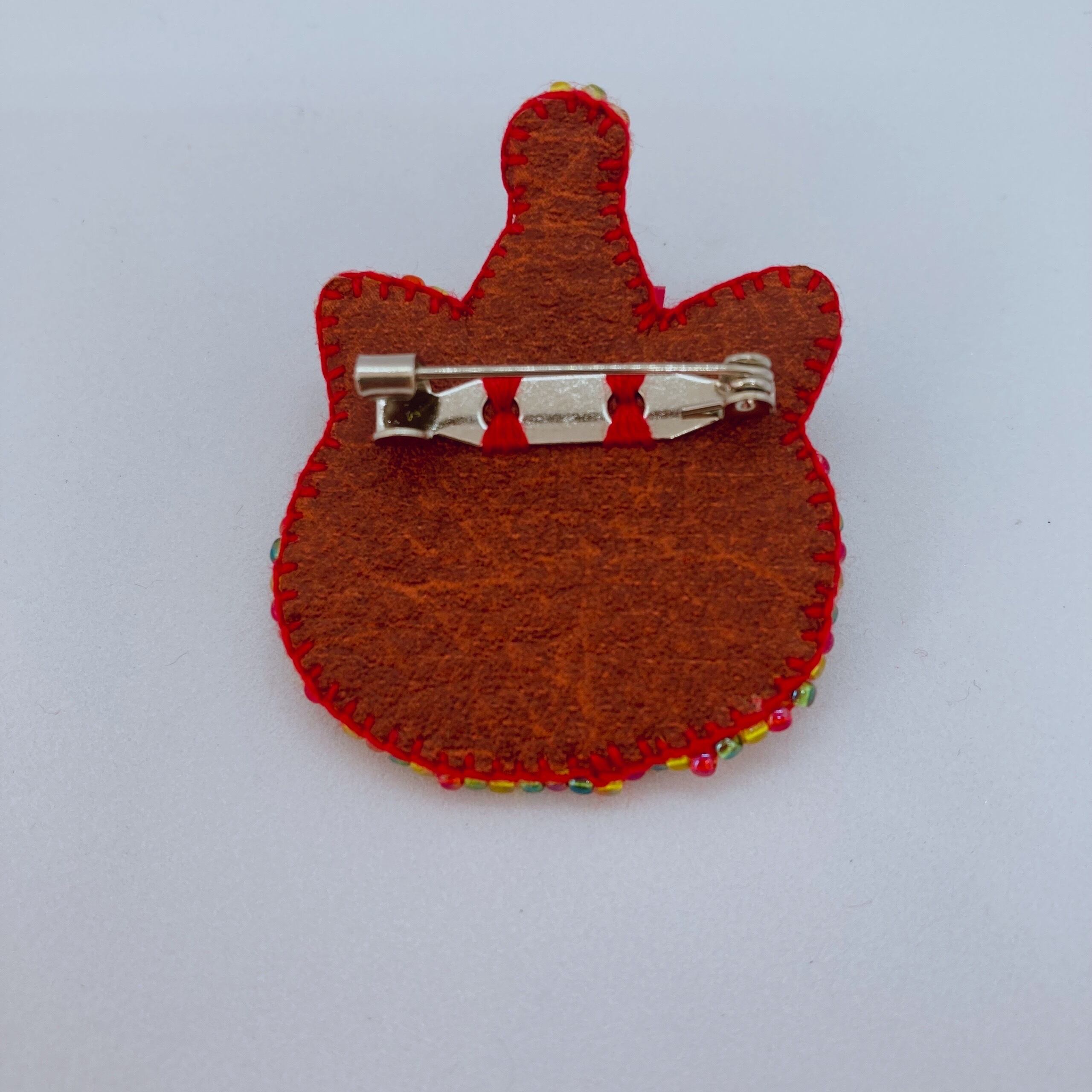フェルト、合皮、刺繍糸、ビーズ、ブローチパーツ